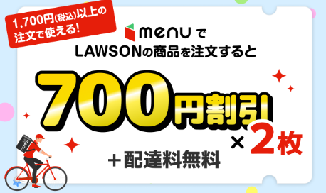 さらにmenuで使えるローソン700円引きクーポン2枚配布(毎週)が配布されています。
