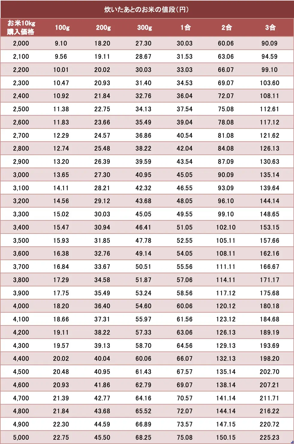 当サイトでは同じような謎計算をする記事をたまに作成しております。お米の炊飯後の価格についても計算していますので、興味のある方は合わせてご確認ください。