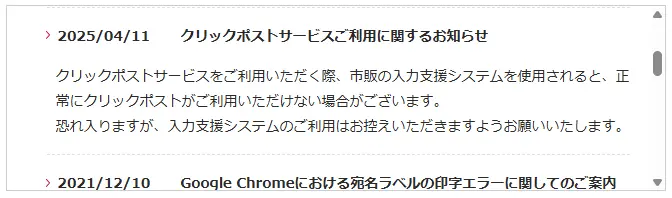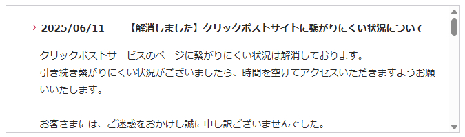 実際、本記事更新時点(2025.6.11)でも未だにクリックポストのエラーはたまに起こっています。