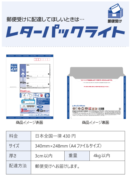 レターパックライトはA4サイズが送れる封筒タイプの発送方法です。