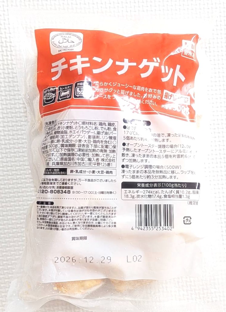 500g375円(税込)で、中国産のよくある普通のナゲットです。