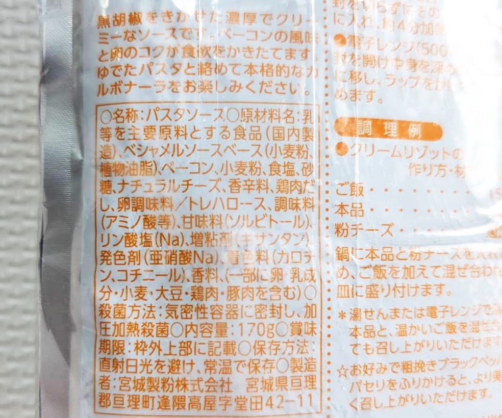 製造は神戸物産のグループ会社「宮城製粉」で、宮城製粉は業務スーパーでお馴染みのレトルト食品や冷凍菓子、チルド惣菜などの多くの商品を製造しています。