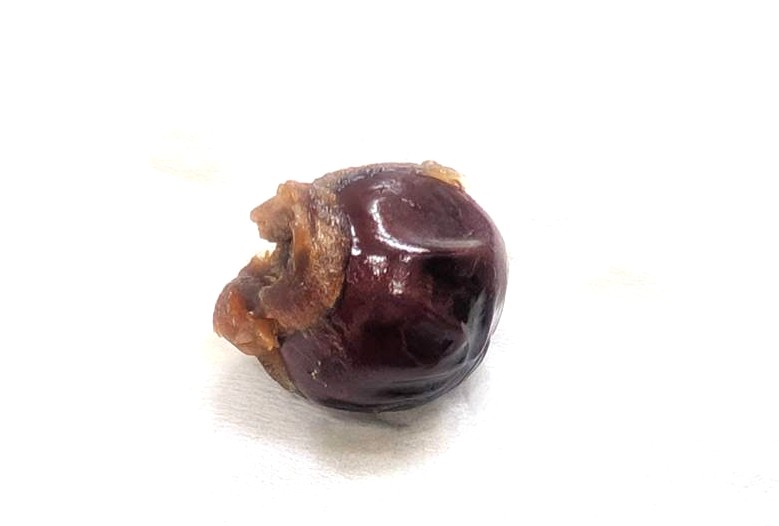 断面を見ると、デーツの種部分がアーモンドになっていて、チョコレートでコーティングされているのが分かります。