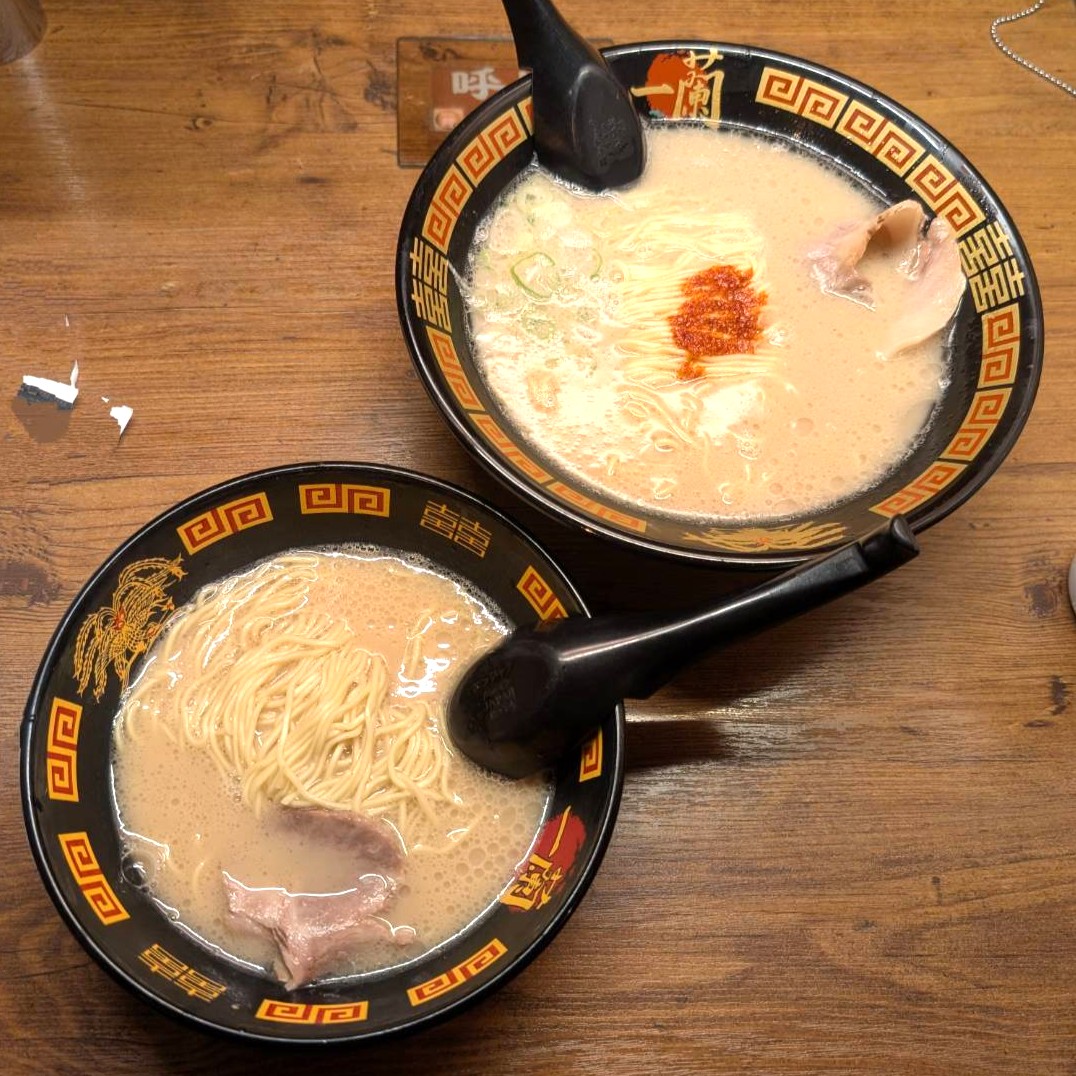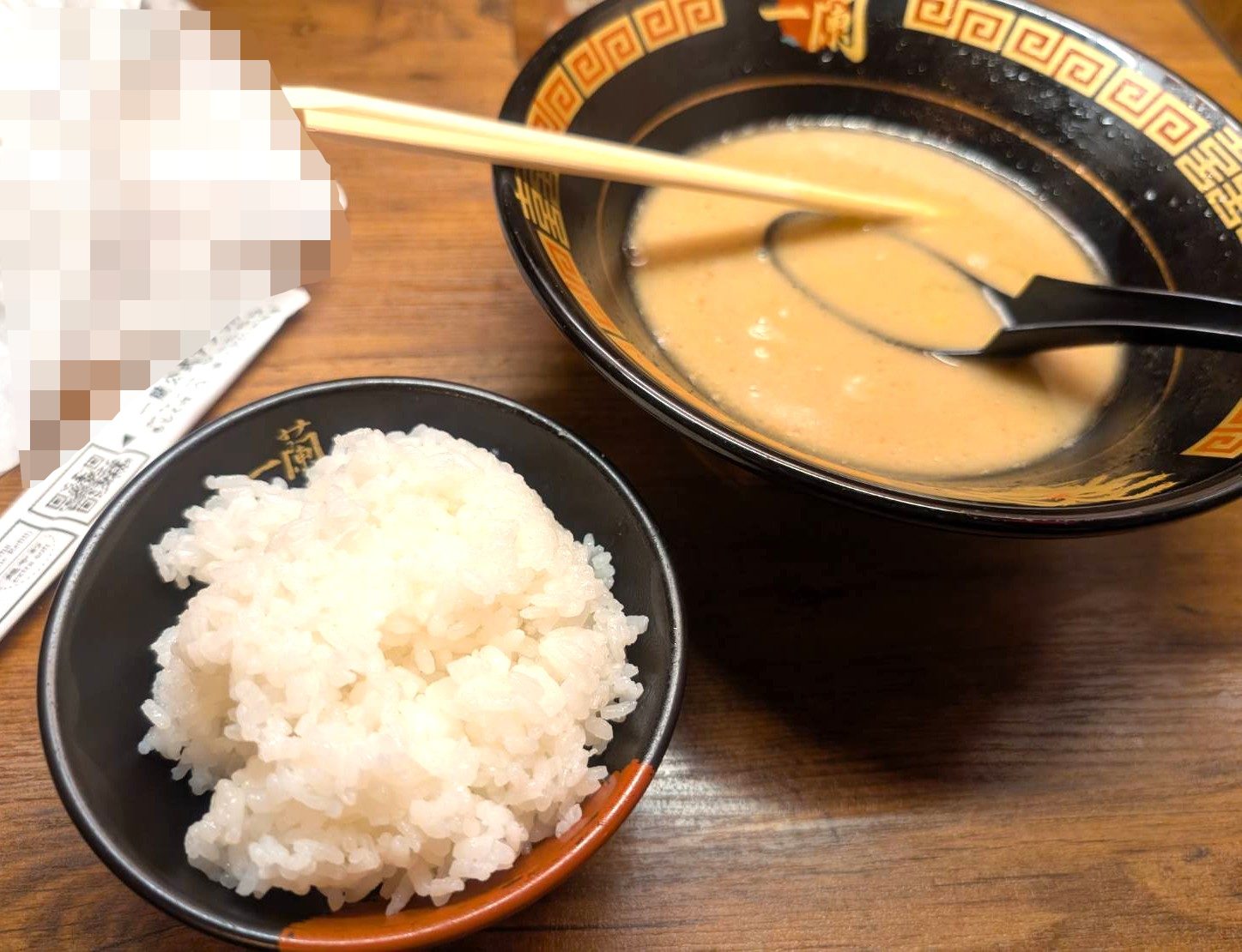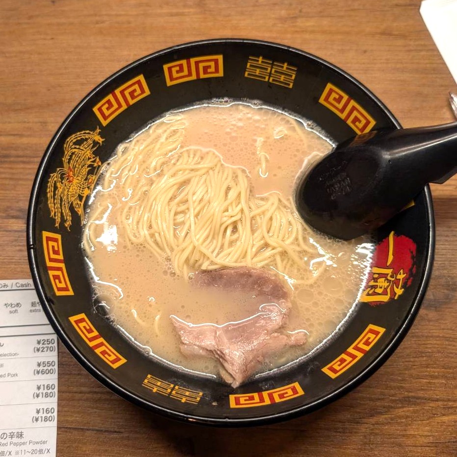 サイズは小ぶりですが、麺・スープは通常の一蘭ラーメンと同じです。