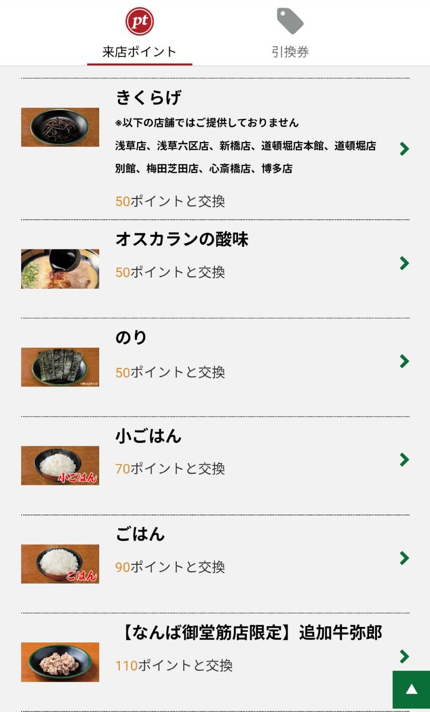 一蘭アプリでは来店ごとに1スタンプ(10pt)が貯まります。