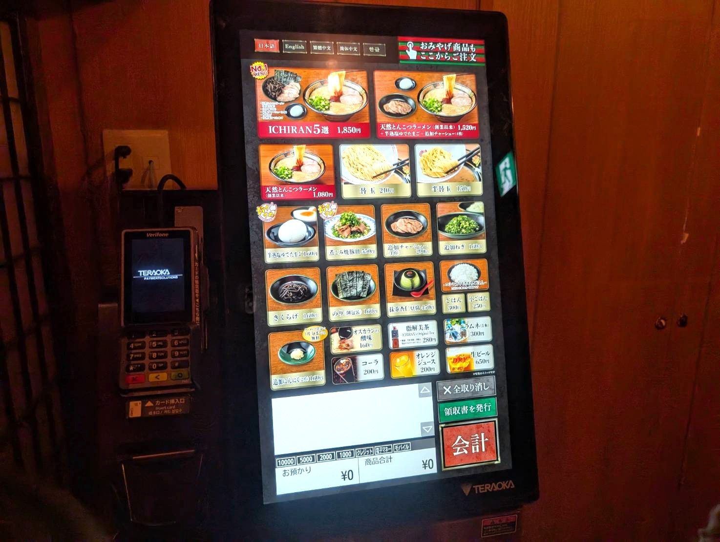 一蘭では一部の店舗を除き、キャッシュレス決済対応券売機を導入しています。