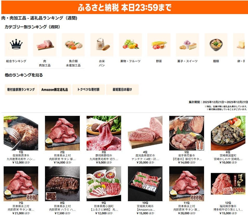さらに、2025年12月24~2026年1月5日まではふるなびWeekと題し、対象の返礼品が特別価格です!