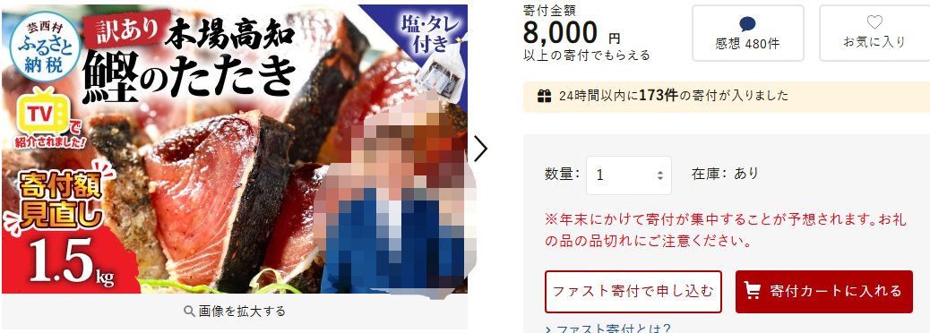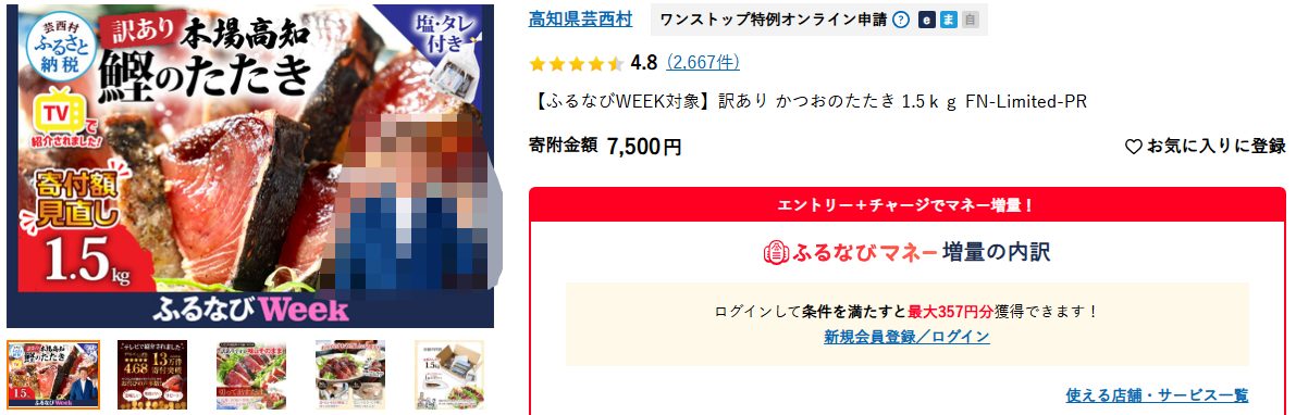 例えば、高知県芸西村の鰹のたたき1.5kgは、他サイトでは8,000円ですが、