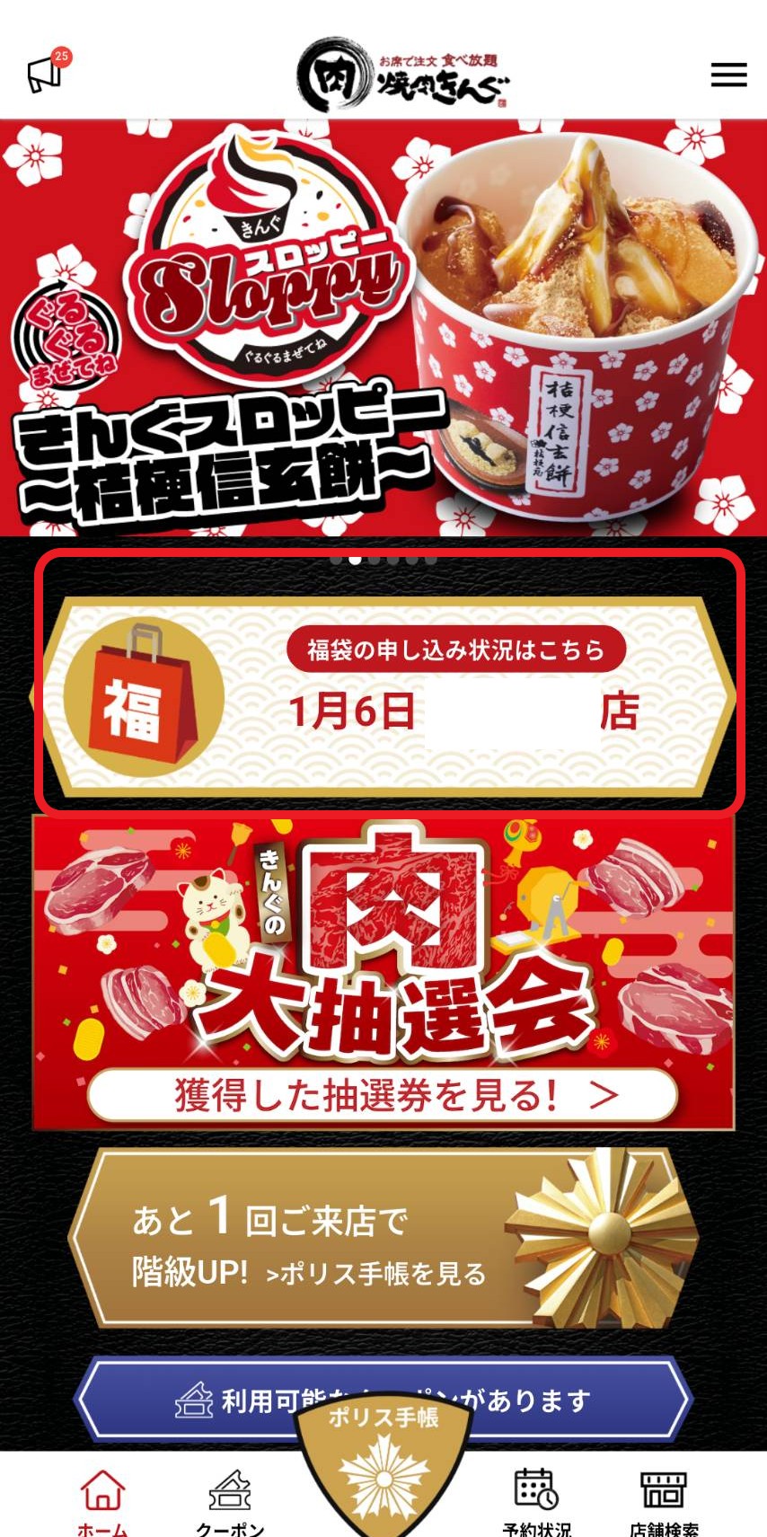 焼肉きんぐの福袋はアプリからの事前抽選です。