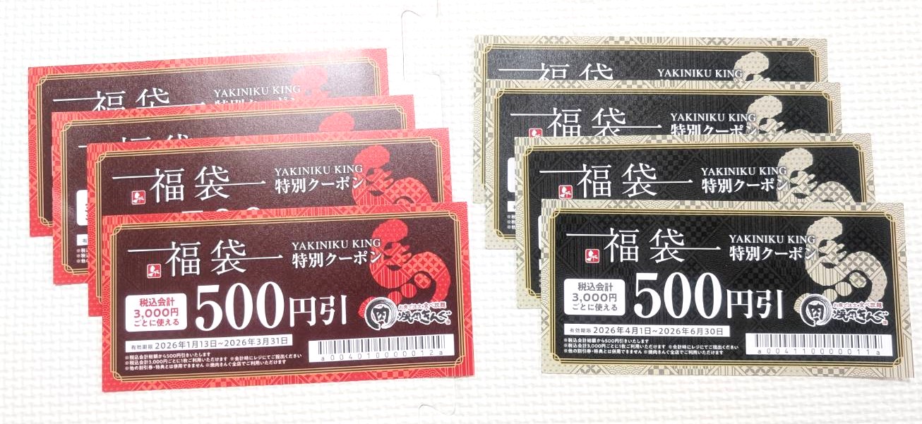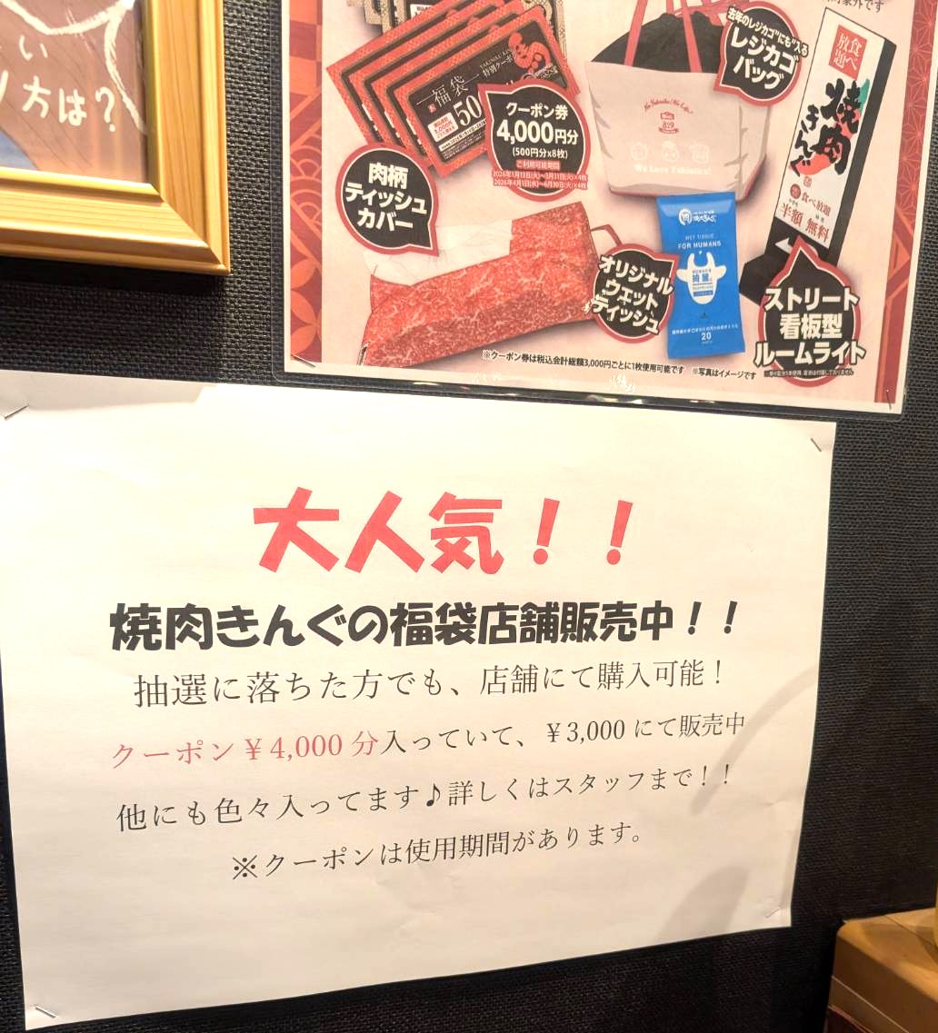焼肉きんぐではアプリクーポンなどがありますが、福袋の購入は割引券の対象外です。