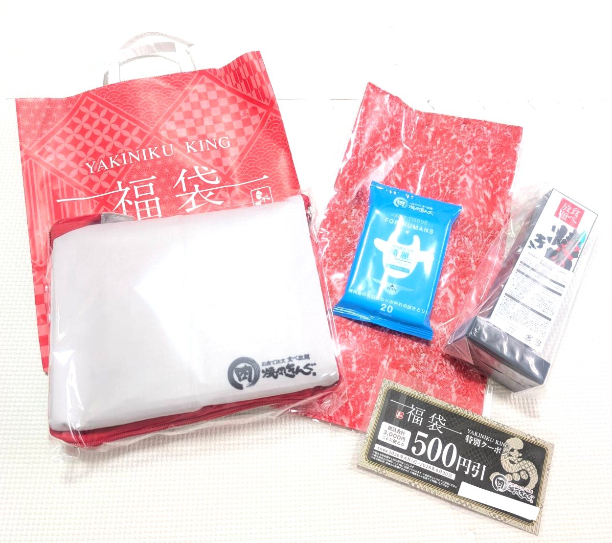 福袋自体が年々値上がりしていく中、焼肉きんぐは今年も3,000円(税込)です。