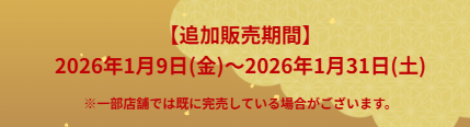 2026年の福袋抽選期間は、2025年10月6日~10月16日で、当選発表は2025年10月27日~です。