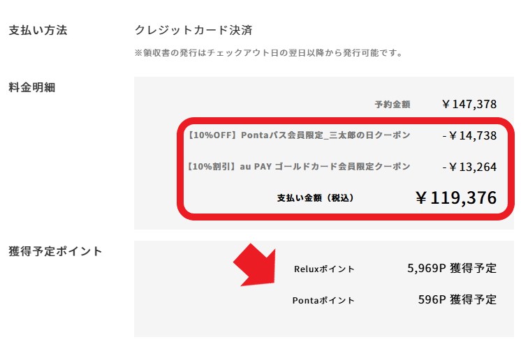 追加でReluxポイントとPontaポイントも貯まるため、さらにお得です。
