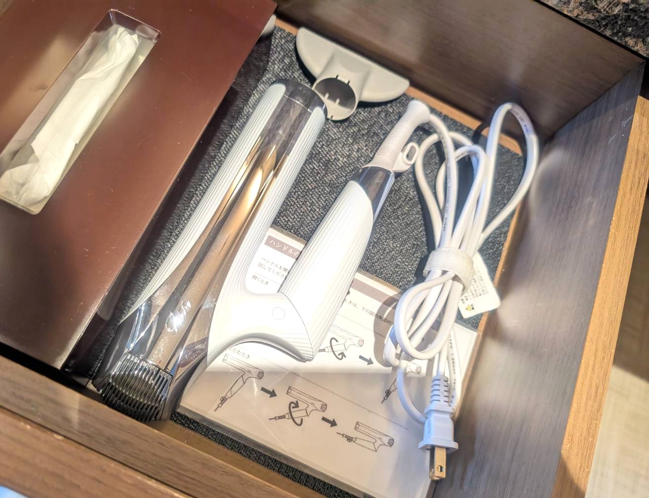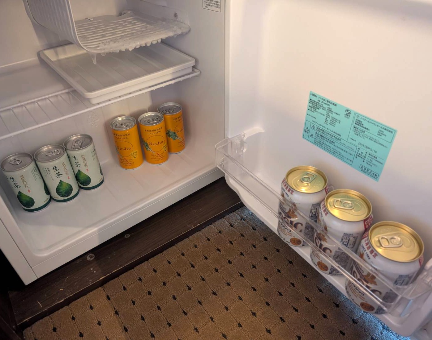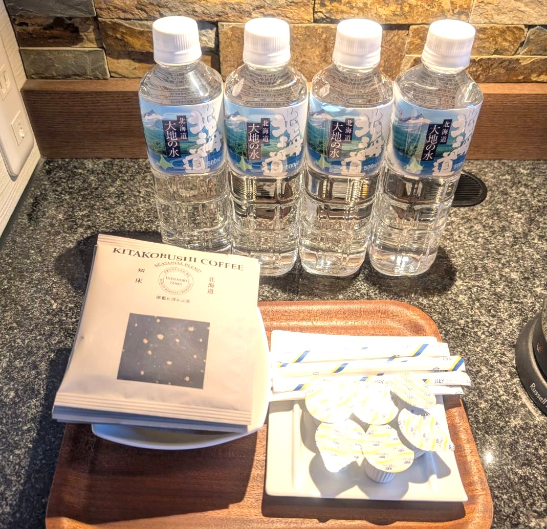 お水やコーヒー類他、冷蔵庫にもビール、生茶、野菜ジュースが冷えていました(部屋でも飲みたかったので有難い)。