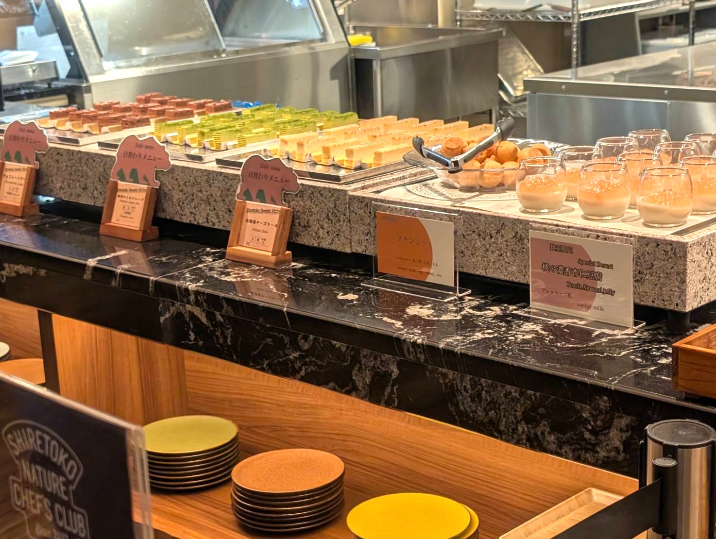 お皿も一品一品、ビュッフェ会場で扱うには大変そうな大きさと重さで、見栄えもいいです。北海道らしいジビエ料理(エゾシカボロネーゼや鹿のローストビーフ等)も。