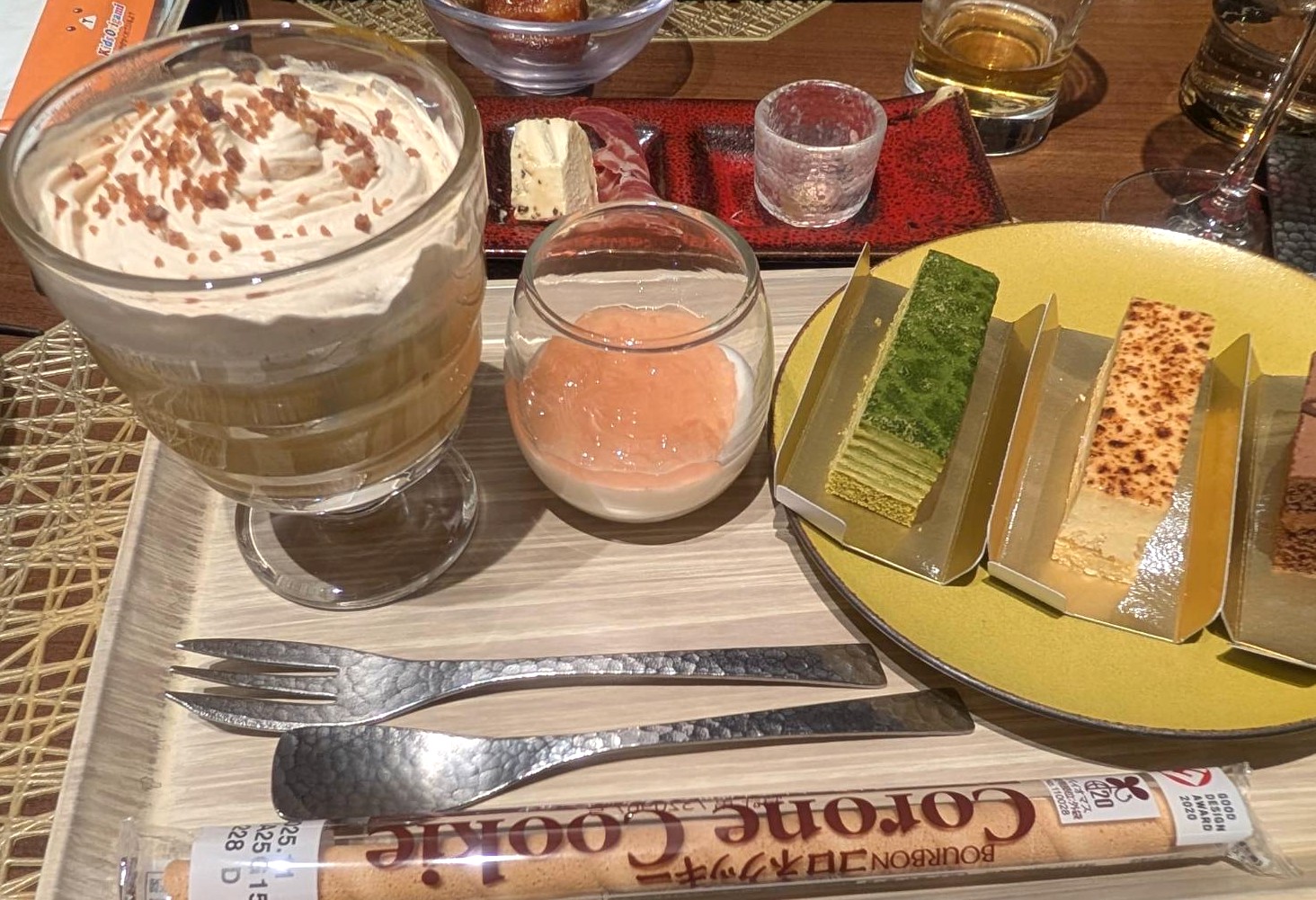 サラミにモッツァレラチーズ、そしてスイーツは上から「プリン・ティラミス・マカロン・シュークリーム」です。