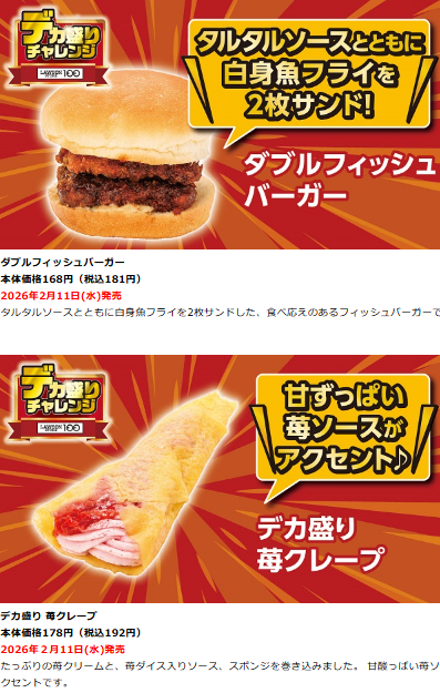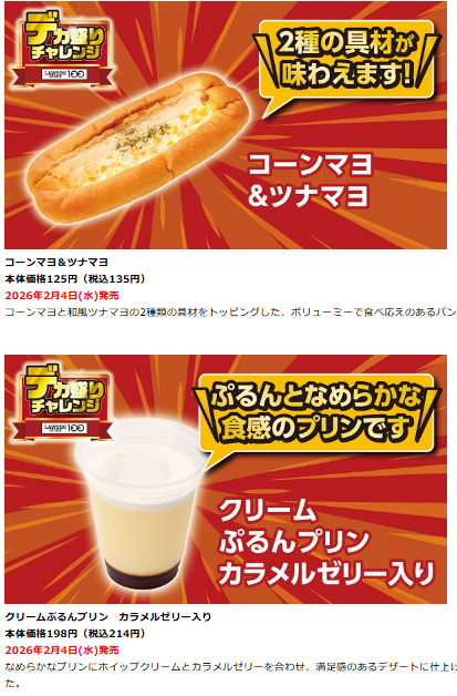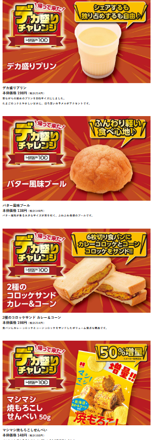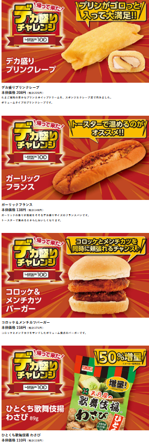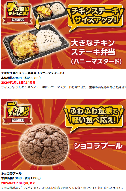 ローソン100では、2026年1月28日~2月24日の期間で「デカ盛りチャレン」が開催されます。