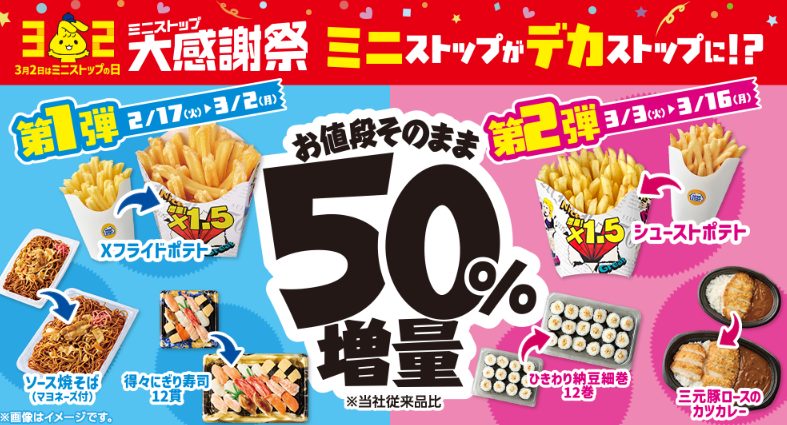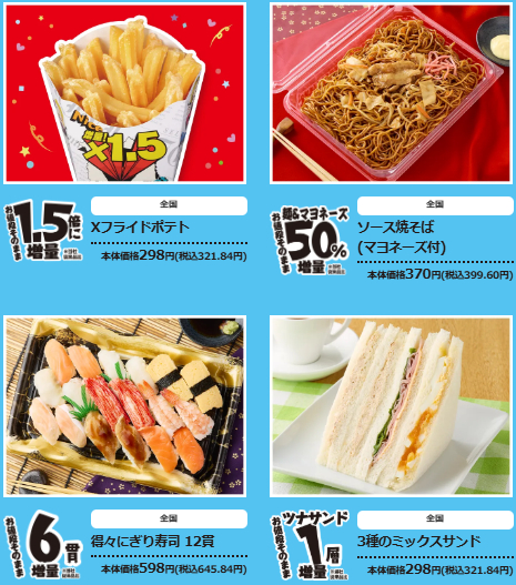 コンビニ各社が増量キャンペーンを開催!!