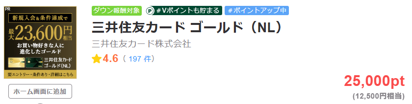 三井住友カードゴールドNLもちょびリッチで公式特典の最大23,600円相当とは別に12,500円相当のポイント、合計で最大36,100円相当が獲得できます。