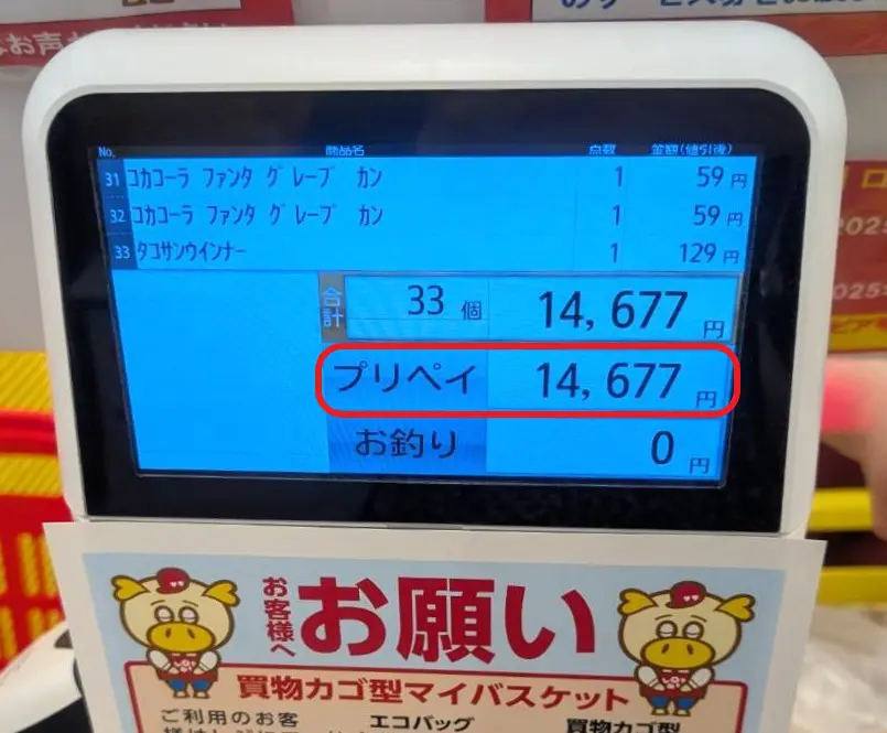 唯一、残高が0円になったときのみ、不足分をセルフレジで支払うことが可能です。