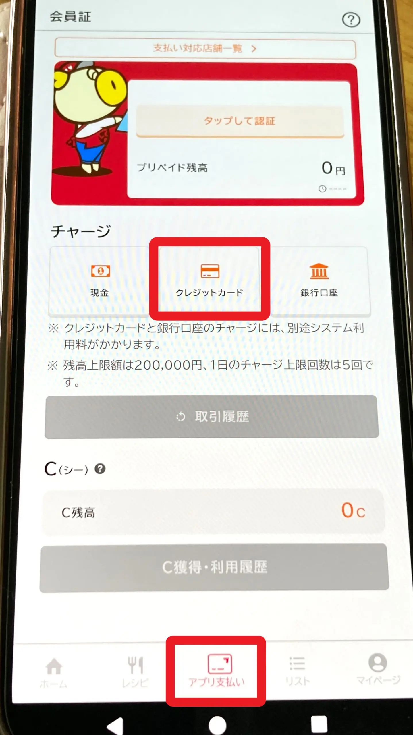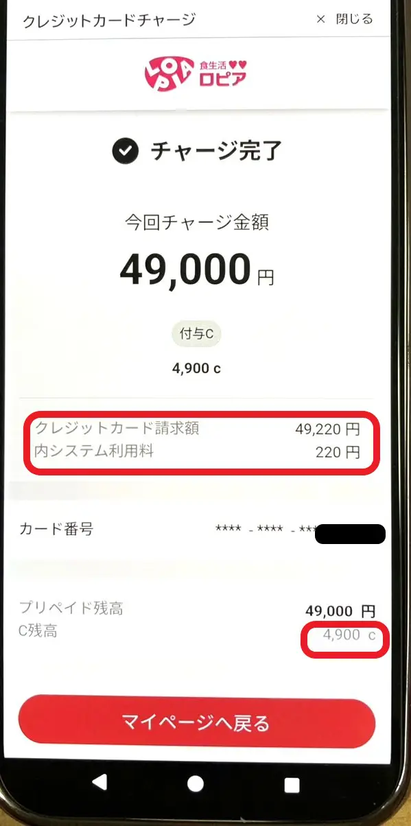 実際にロピアアプリにクレジットカードでチャージをしました。