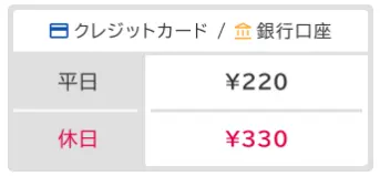 現金のみ手数料無料ですが、クレジットカードと銀行口座は平日220円、休日(土日祝・特定日)330円のシステム利用料が発生します(2025年4月8日 改訂)。