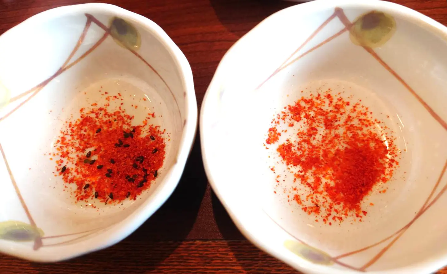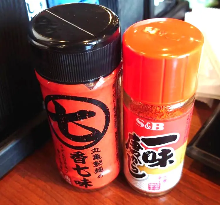 違いは一目瞭然ですが、香りも欲しいときは左の「香七味」が、辛さだけ欲しい場合は右の「一味」が良さそうです。