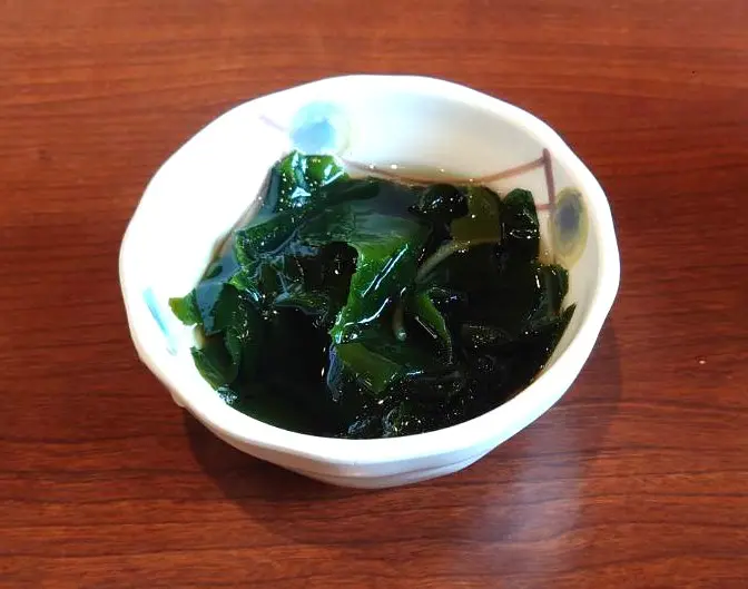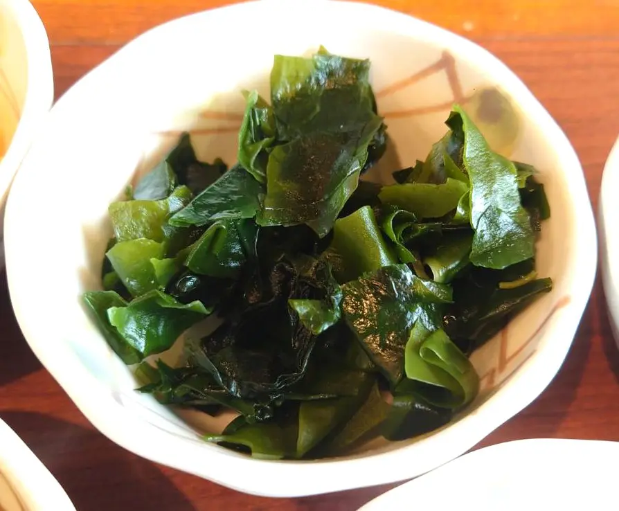 わかめは無料かつ、中国産わかめのため食感や風味に期待はしていませんが、想像以上に歯ごたえがあって立派なわかめでした。