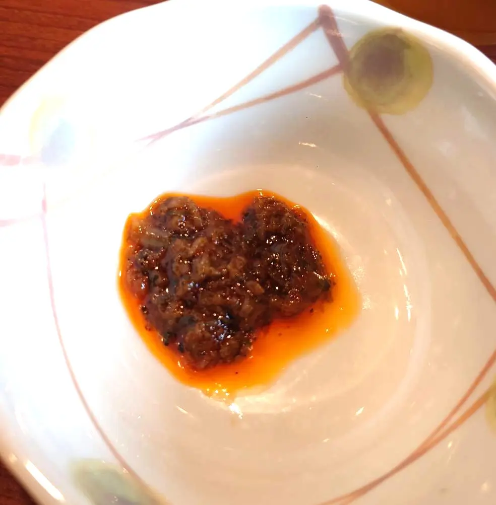 「しび辛ラー油」を器に入れてしまうと、全部がラー油の味になってしまうため、小皿に移して食べるのがおすすめです!