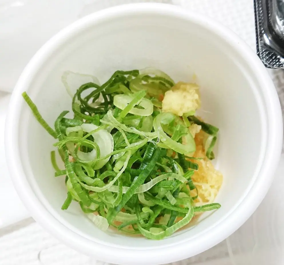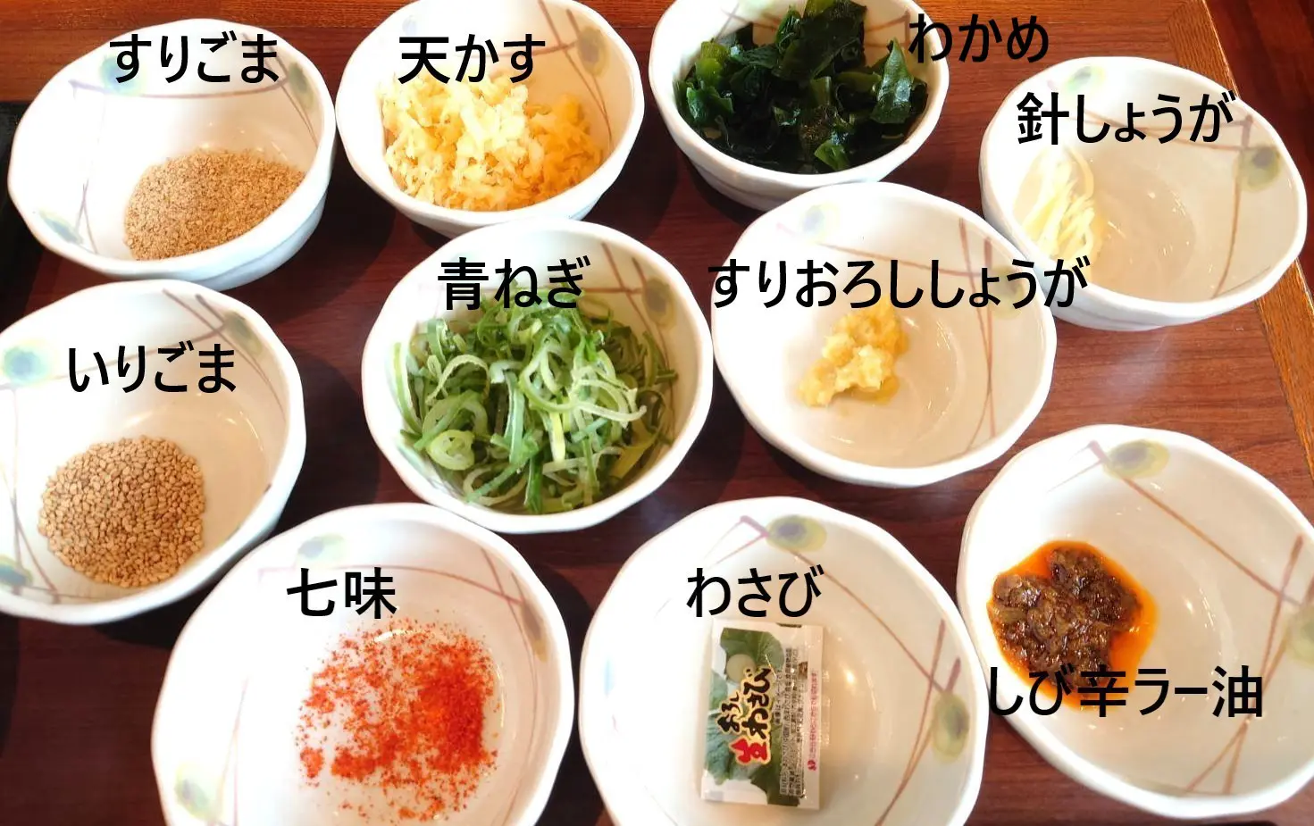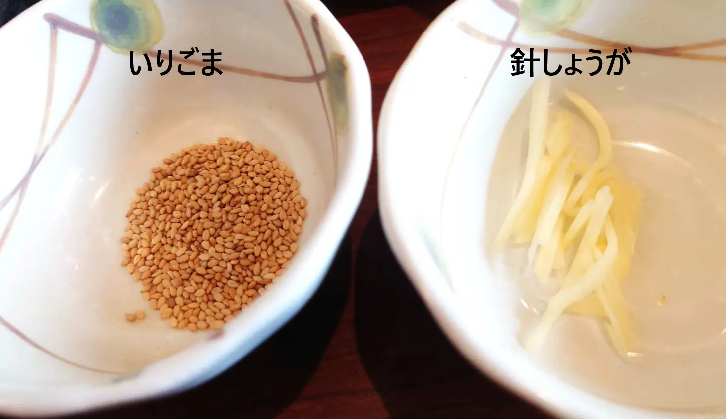 店舗によっては、下記画像のような薬味セット(ねぎ、しょうが、天かす)で提供する場合もあるようです!
