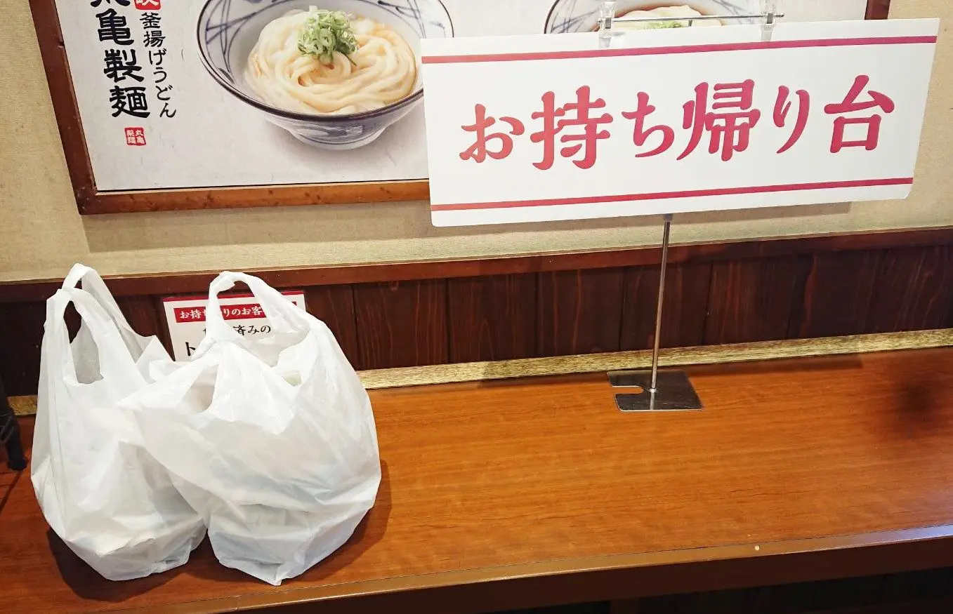 丸亀製麺では、お持ち帰り時でも「香七味」を除く全ての無料トッピング・薬味が利用可能(うどん弁当直売所を含む)です。