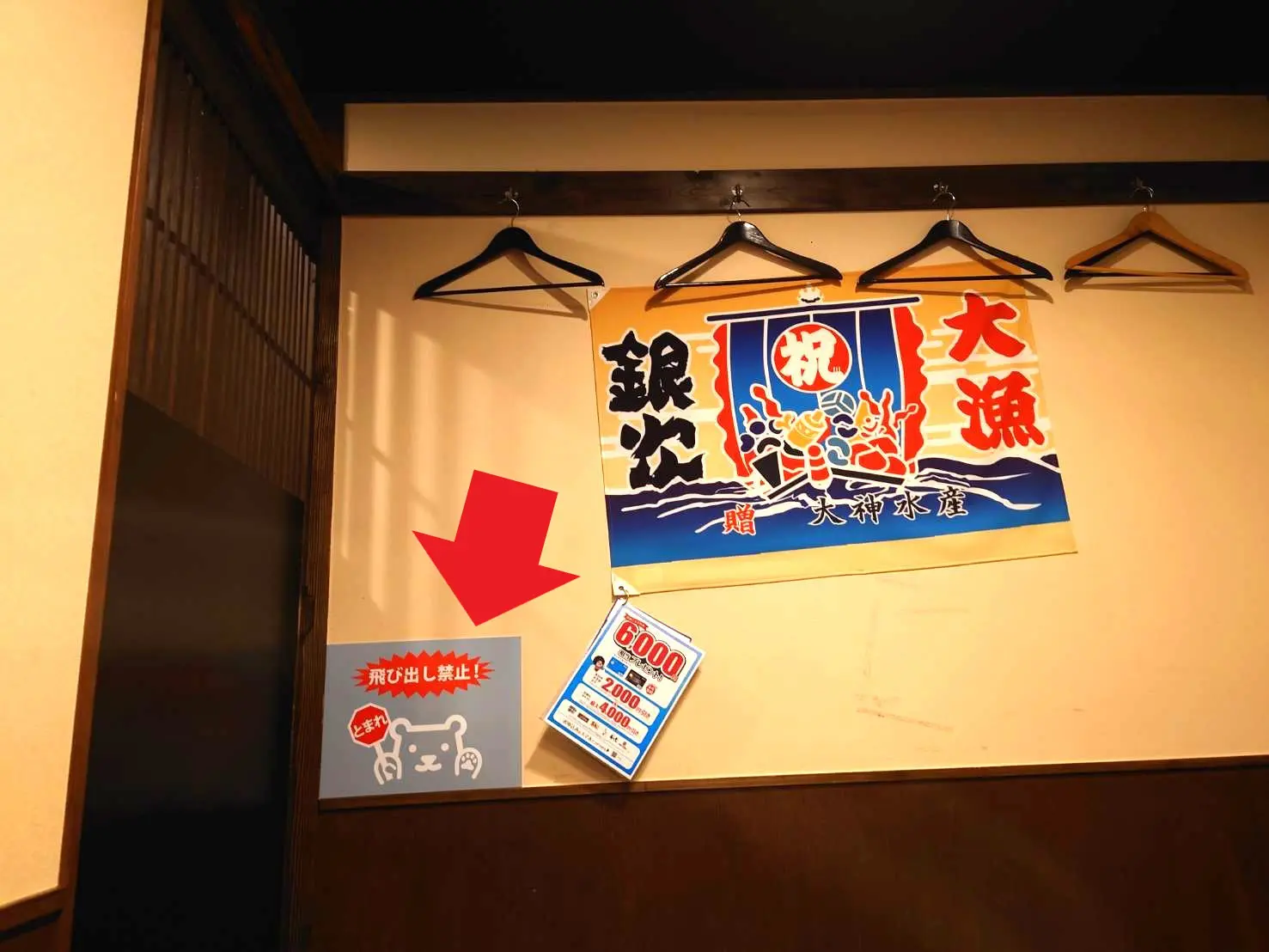 反対側はこんな感じで、扉には飛び出し注意の看板も。