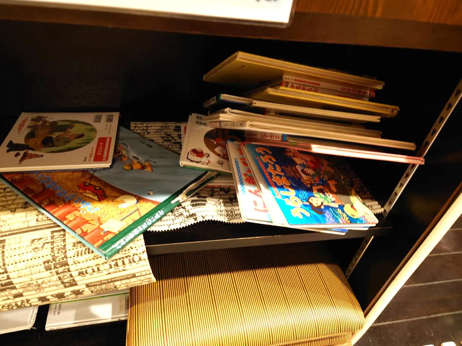 部屋の外にはブランケット、子供食器、えほんがありました。