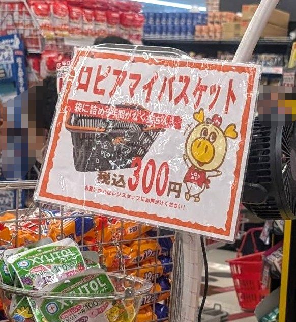 近頃、大手のスーパーではレジ前やサービスカウンターで、スーパーオリジナルのバスケット(マイカゴ)を販売していることが多いです。