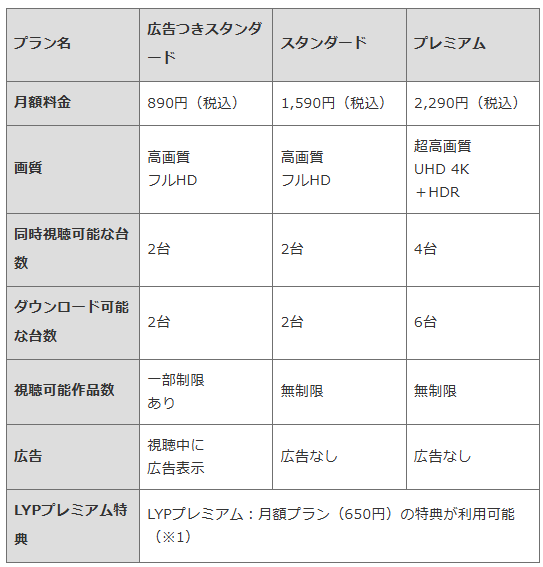 | Netflix | 790円〜 | スタンダードは1,490円、プレミアムは1,980円 |