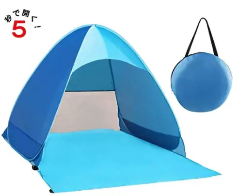 「テント」という表現をせずに「サンシェード(日除け)」と表記して販売しているところもあるほど、簡易的なテントになっています。