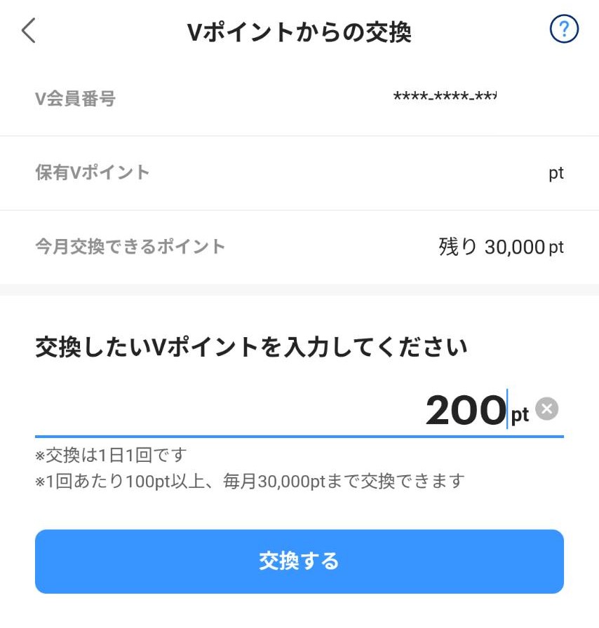 即時交換可能なので、瞬時にVポイントへの交換が完了が確認できました。