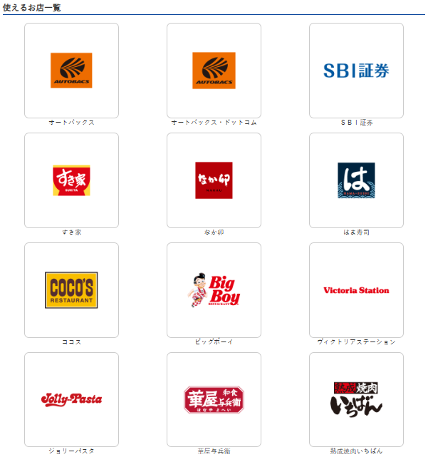 なお、「利用先限定ポイント」の利用先はこちらに掲載がありますが、VポイントPay残高チャージやVポイント運用などの三井住友系サービスのほか、ゼンショーグループをはじめとする店舗でも利用可能です。なお利用先限定ポイントはPayPayポイントに交換することも出来ないのでご注意ください。