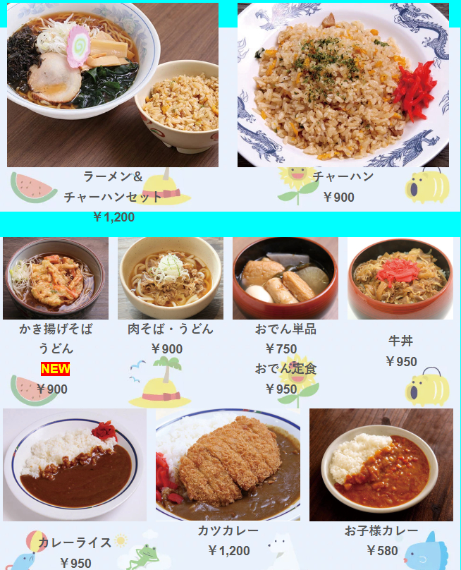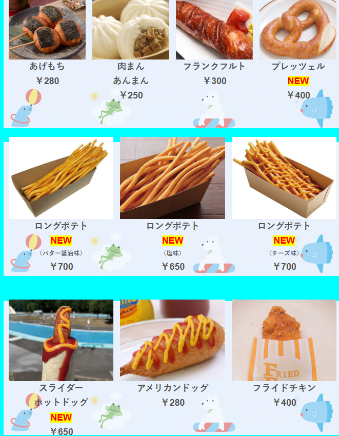 サクッと小腹を満たしてくれる売店の他、プールサイドには多くのキッチンカー(フルーツ飴、コーヒー、ハンバーガー等)があるため食事に困ることはありません。