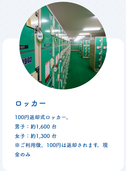 貴重品を保管できるコインロッカー(返却式)はありますが、