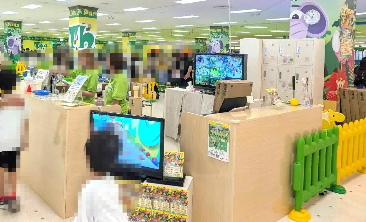 また、私の利用した店舗では壁のないスーパーのフロア内であり、通路を挟んで遊び場があるため受付以外の場所からも出入りができる状態でした。