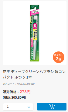 - 花王 ディープクリーンハブラシ 超コンパクト ふつう 1本(税込305.8円×1)
