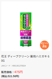 - 花王 ディープクリーン 薬用ハミガキ 60G(税込522.5円×1)
