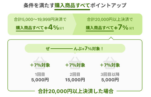 - 合計20,000円以上購入で+7%還元