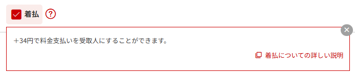 着払いなのでオプション料金34円を含めた上記金額を、受取る人が支払います。