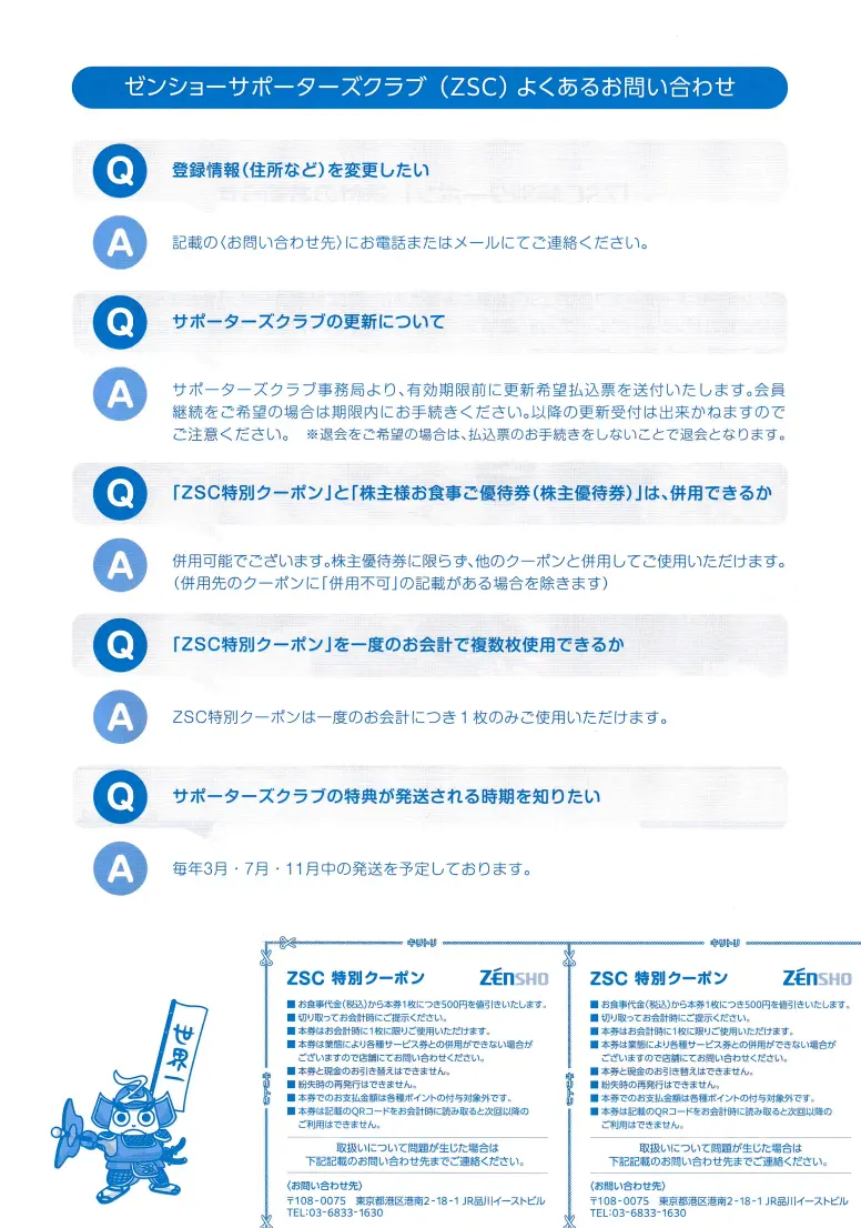 ゼンショー株の隠れ優待?とも言えるゼンショーサポーターズクラブ。
