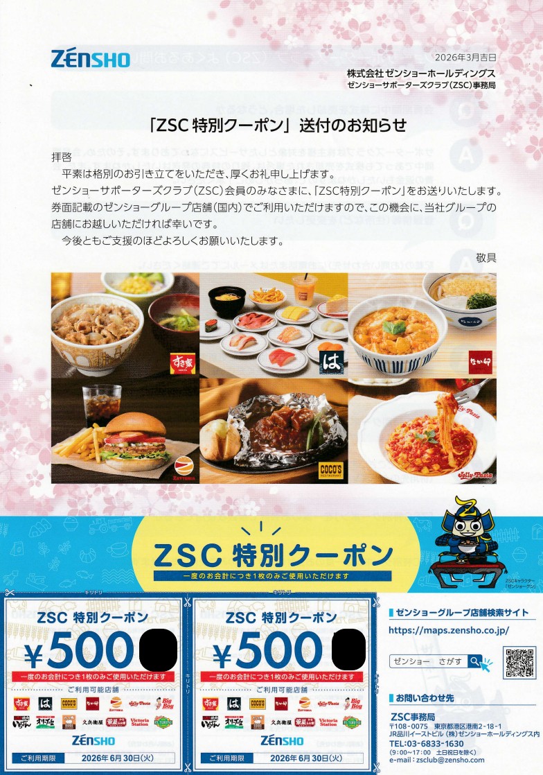 年に3回(3月、7月、11月)ZSC特別クーポンという名のクーポンが届きます。