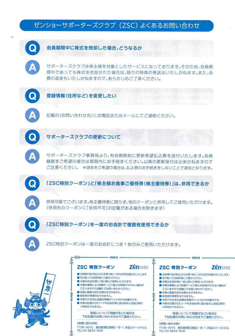 ゼンショー株の隠れ優待?とも言えるゼンショーサポーターズクラブ。