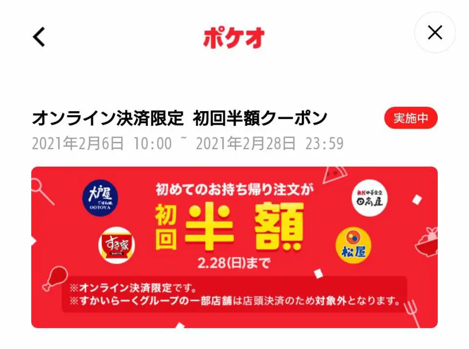 注意事項を読む限り、1会計に1枚しか利用できないという制限はあるものの、最低利用金額もなく、他のクーポンと併用も可能ということでかなり使い勝手がいいクーポンでした。
